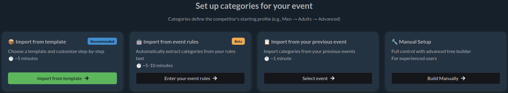 This option allows extracting categories from the official event rules.