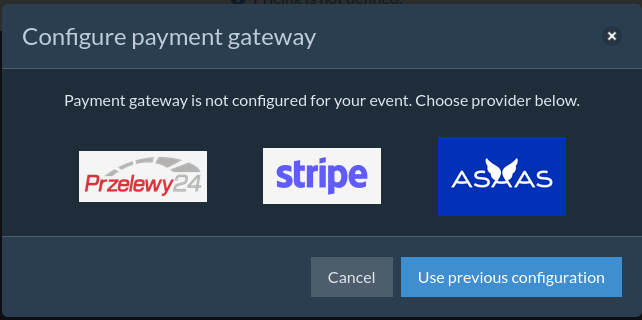 If you want to set up Asaas payment, see the detailed integration description: How to integrate payment with Asaas?.