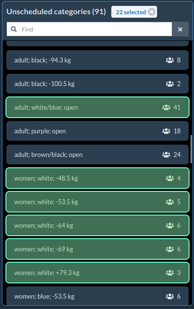 - One schedule is isolated from another, which means that fights from one schedule cannot be assigned to mats from another schedule.