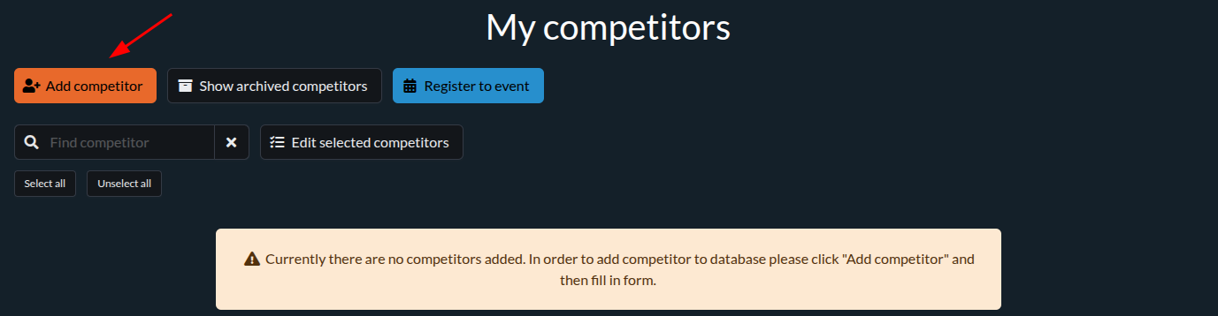 Before registering for an event, you must add competitors to your personal database.
