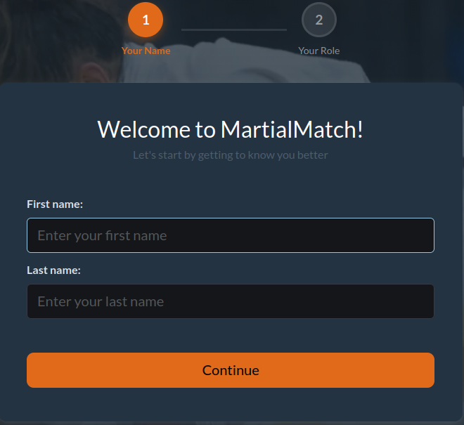 - You will be redirected to a page where you must provide your first and last name.
