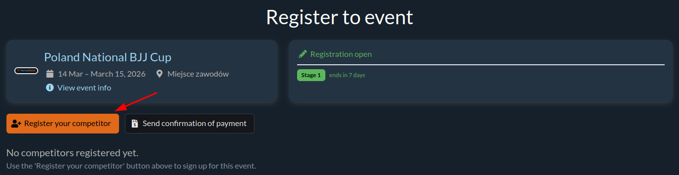On the event page, click Register your competitor.