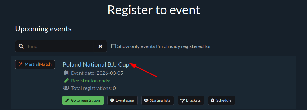 🏆 Registering for an event