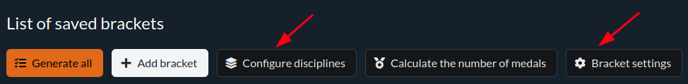 To open: from the Brackets page, click Configure disciplines in the toolbar.