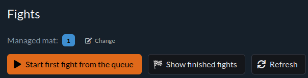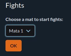 At each mat, we log in and go to the queue of fights that will be played on the mat. We go through the Management menu and Start fights. Then on the page we select the mat we want to manage: