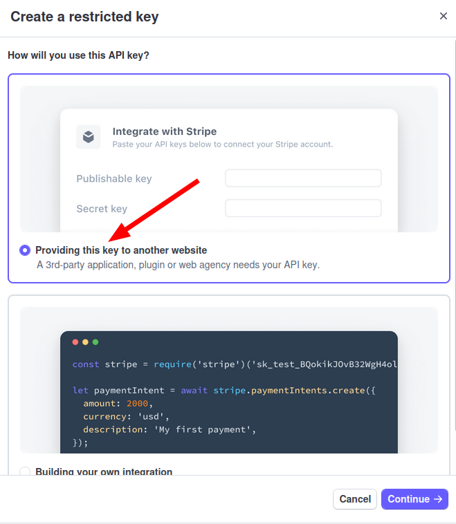Click Create restricted key. In the next window choose the intended usage for the key.