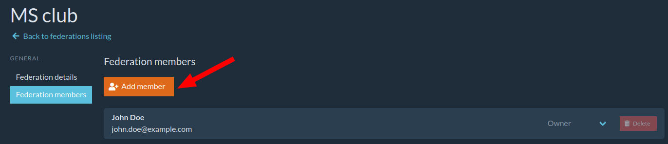 Managing federation members takes place through the Federation members tab in the federation management panel.