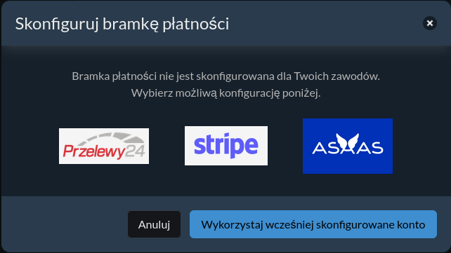 Na następnej stronie klikamy przycisk Konfiguracja bramki płatności: