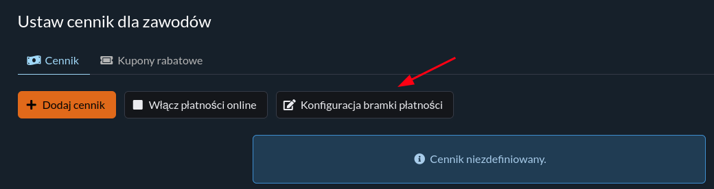 Po skonfigurowaniu bramki płatności można już skonfigurować cennik.