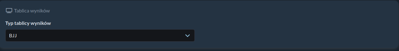 Wybierz, która implementacja tablicy punktowej ma być używana dla wszystkich walk w tej dyscyplinie. Np. dla BJJ można wybrać między standardowym BJJ, BJJ niebieski/czerwony lub BJJ czerwony/niebieski.