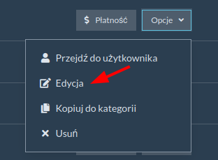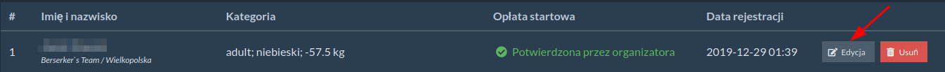 - Na nowej stronie kliknąć Edycja dla wybranego zawodnika.