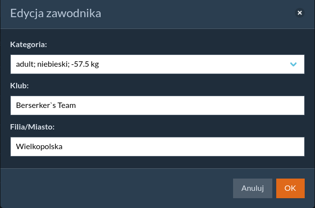 ℹ️ Jeżeli rejestracja na zawody jest już zamknięta i nie ma możliwości dokonywania zmian, jedyną opcją jest kontakt z organizatorem zawodów i poproszenie go o dokonanie zmiany klubu reprezentowanego przez zawodnika.
