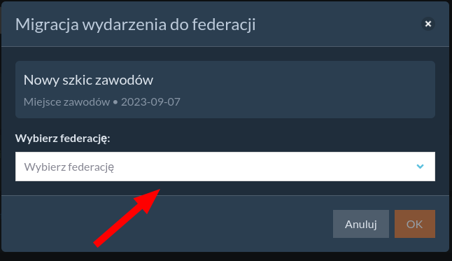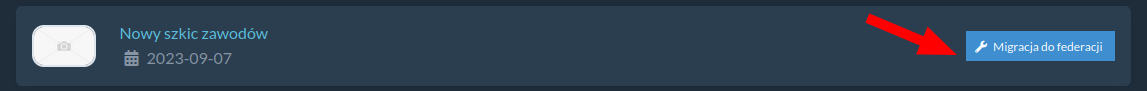 - Przy zawodach, które nie należą do żadnej federacji, pojawi się przycisk Migracja do federacji. Naciśnij go.