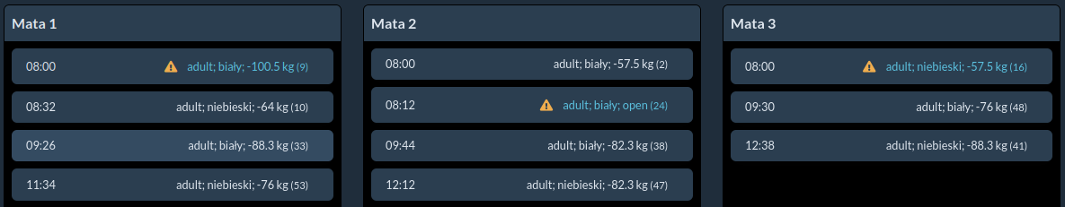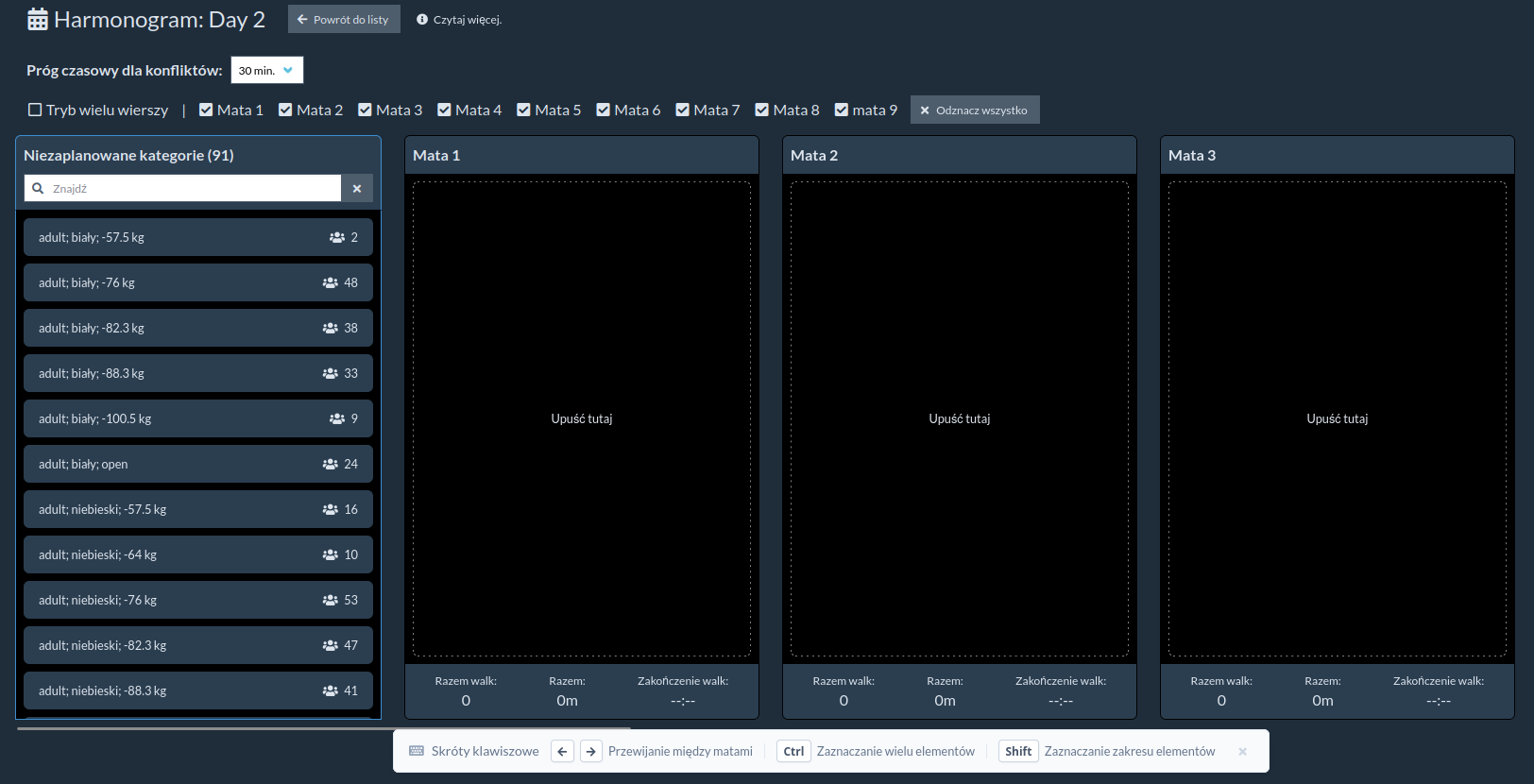 Gdy uznamy, że wszystkie kategorie są przypisane do mat, a konflikty zostały rozwiązane, możemy udostępnić harmonogram zawodnikom.