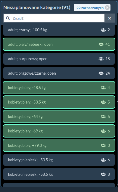 System w łatwy sposób pozwala wybrać jedną lub wiele kategorii naraz, które chcemy przypisać do mat.