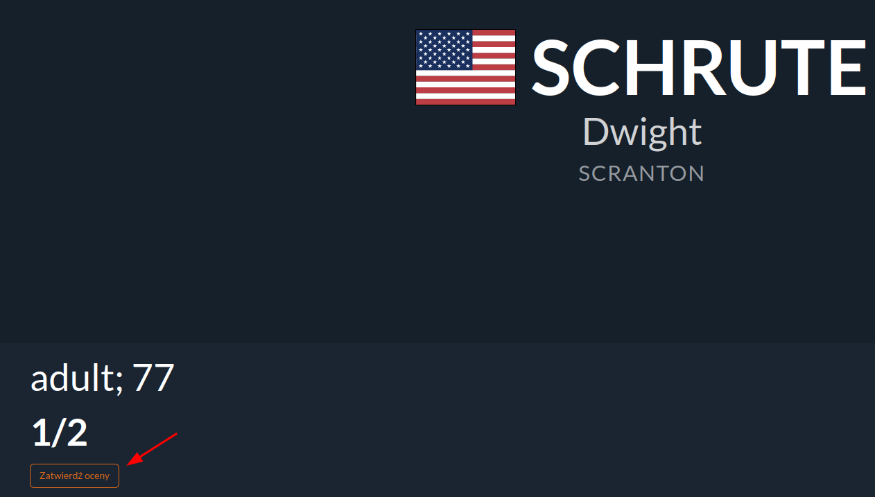 Aby ocenić zawodnika, kliknij przycisk Zatwierdź oceny. Pojawi się okno, w którym każdy sędzia może wpisać swoją notę. Oceny są zapisywane automatycznie i uwzględniane w końcowej klasyfikacji.