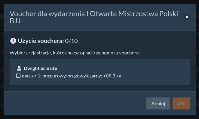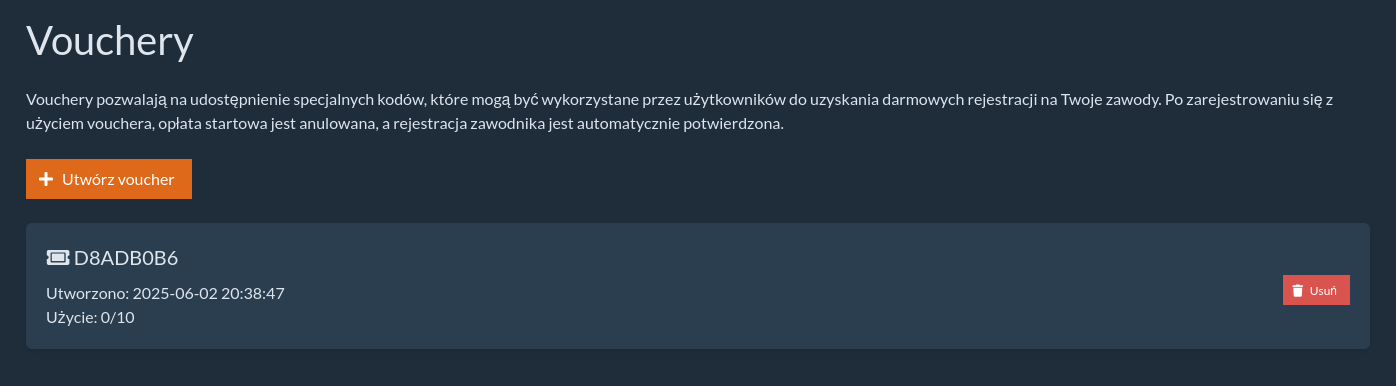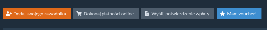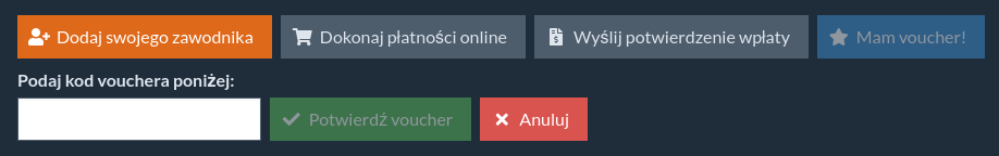 - jeżeli rejestracja jest zamknięta, wykorzystanie vouchera będzie możliwe tylko wtedy, gdy organizator włączy opcję opłacania zawodów albo udostępni nam link do zaproszenia do rejestracji.