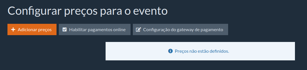 Agora você poderá definir os preços do seu evento. Para mais detalhes, siga este tutorial (em inglês).