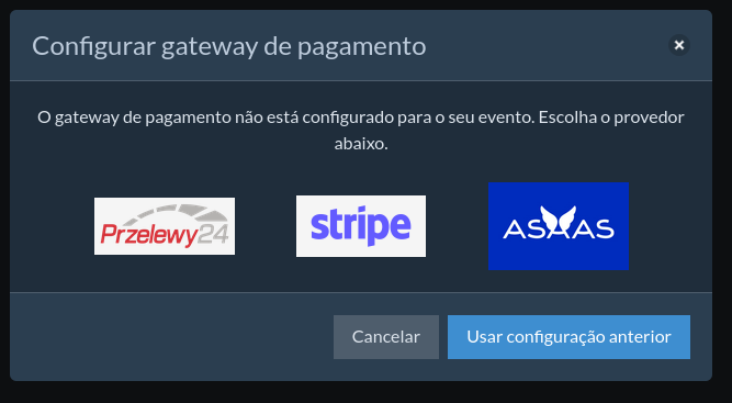 Agora clique em Configuração do gateway de pagamento. Você verá uma pequena janela: