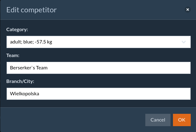 ℹ️ Se a inscrição para o evento já estiver fechada e nenhuma alteração for permitida, a única opção é entrar em contato com o organizador do evento e solicitar que ele altere a equipe da inscrição do seu competidor.