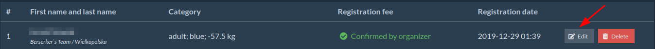 - Na próxima página, clique em Editar ao lado do competidor de sua escolha.